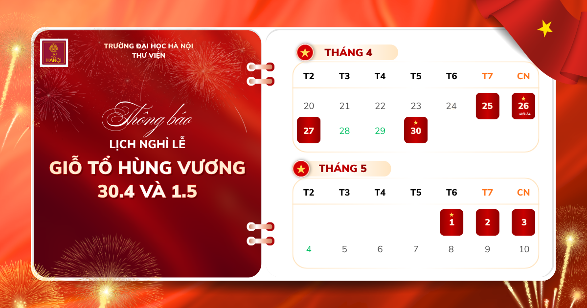 THÔNG BÁO LỊCH PHỤC VỤ THƯ VIỆN DỊP NGHỈ LỄ